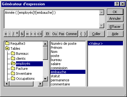 champ calculé suivant: Année d'embauche: Année([embauche]) .